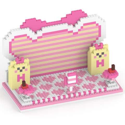 商品寸法(cm):【結目ユイ】幅:5cm 奥行:3.5cm 高さ:5.5cm【ミニキャラ】幅:3cm 奥行:2cm 高さ:2.5cm【ステージ】幅:16cm 奥行:8cm 高さ:8.5cm